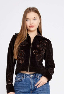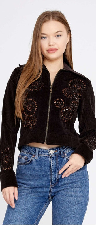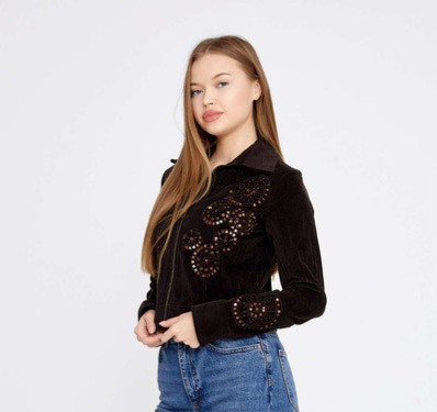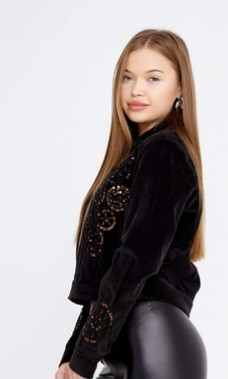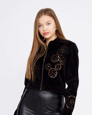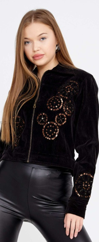 کاپشن کراپ دخترانه مخملی با طرح مجلسی