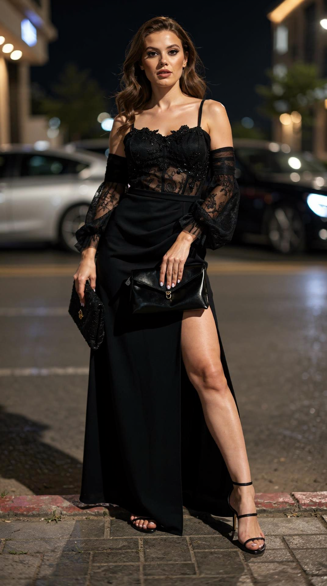لباس مجلسی ماکسی مشکی مدل 2024 برند Favella